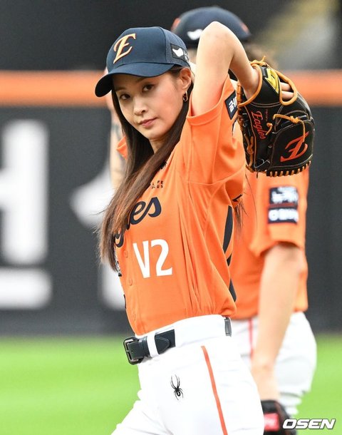 경기에 앞서 가수 겸 배우 유리가 시구를 하고 있다. 2025.10.18 /sunday@osen.co.kr