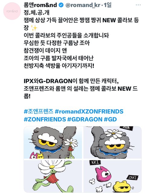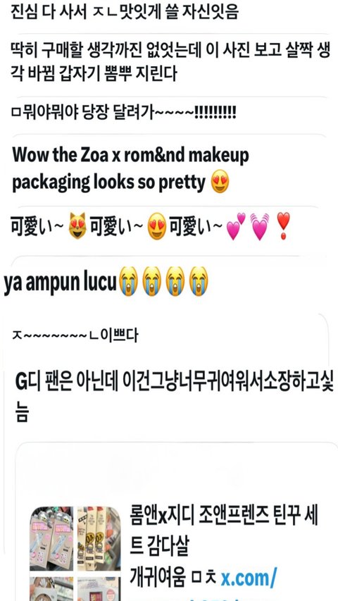 롬앤이랑 콜라보하는데 실물 뜨고 반응 좋음