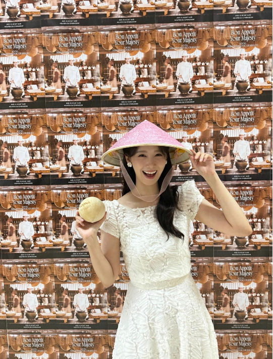 이날 윤아는 드라마 속 대령숙수 의상을 벗고, 대나무로 만든 베트남 전통 삿갓 ‘논라(Non La)’를 착용한 채 등장해 현지 팬들의 열렬한 환호를 받았다.