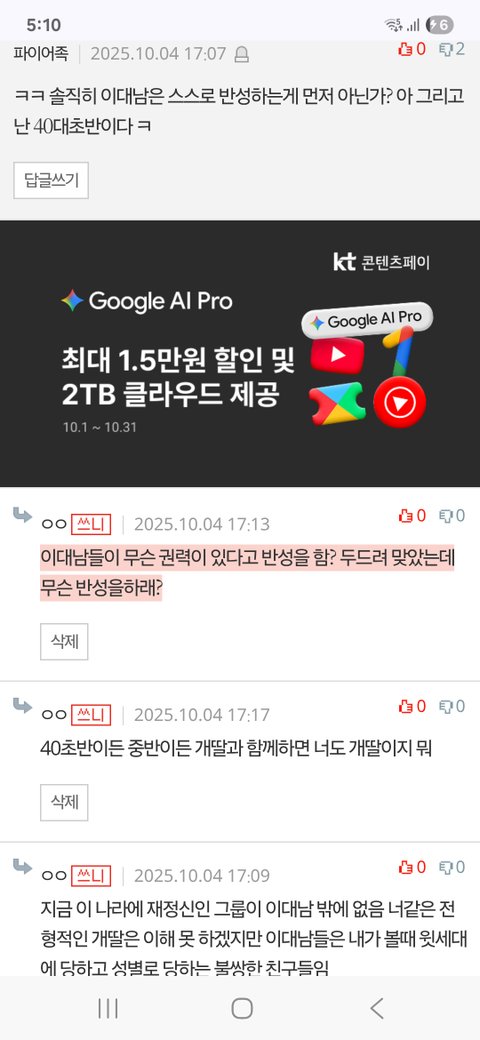 아무런 기득권을 쥐어본적 없는 세대에게 무슨 반성을 하라는건지.. 개 쳐맞기만 하고 늦게 태어난 죄 밖에 없는 세대한테 무슨 반성을 하라고 ㅈㄹ인건지.. 반성은 똥팔육과 스윗영포티가 좀 해야지.. 이게 1찍 스윗영포티들의 기본 마인드임.. 영포티 개 쳐맞아야함..ㅎㅎ