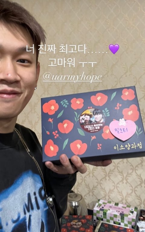 공개된 사진 속에는 제이홉이 콘서트를 앞둔 크러쉬를 위해 간식 차를 선물한 모습. 제이홉은 '효서비 첫공 모두 모여 -호서기가 쏜다-', '호서기가 축하하는 효서비 첫공'이라는 응원의 메시지를 남겼다.