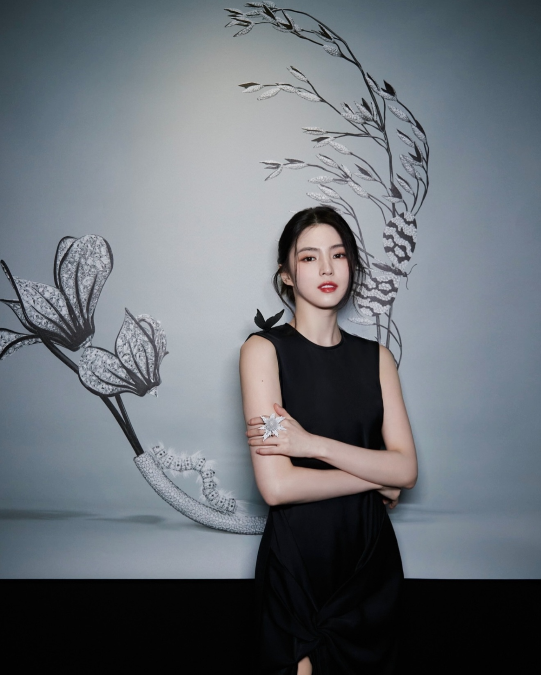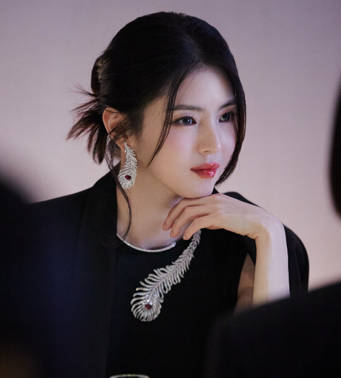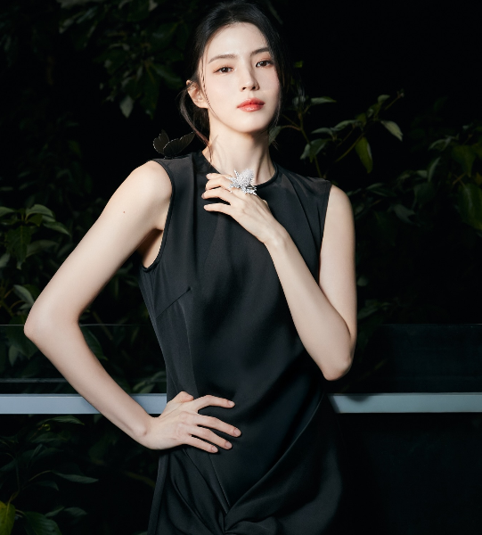 반듯하게 묶은 헤어와 담백한 메이크업은 주얼리의 화려함과 대조를 이루며, 한소희 특유의 신비로운 분위기를 극대화했다.또 다른 사진에서는 검은 배경 속 은빛 잎사귀 장식과 어우러지며, 마치 살아 있는 동양화 한 장면 같은 몽환적인 이미지를 연출했다. 절제된 표정 속에서도 한소희는 특유의 카리스마와 예술적 감각을 동시에 보여주며 ‘예술과 패션의 경계’를 허물었다는 평가를 받고 있다.