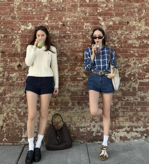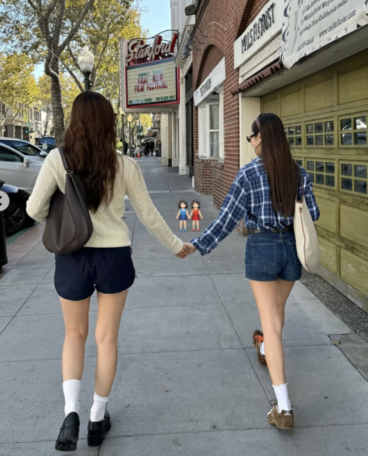 공개된 사진 속 제시카와 크리스탈은 붉은 벽돌 배경 앞에서 나란히 서거나 손을 잡고 거리를 걷는 등 다정한 자매의 일상을 담았다. 크리스탈은 크림색 니트에 네이비 쇼츠, 로퍼를 매치해 단정하면서도 청량한 분위기를 자아냈고, 제시카는 체크 셔츠와 데님 쇼츠로 내추럴하면서도 세련된 스타일을 완성했다. 두 사람 모두 화이트 양말과 빈티지한 아이템으로 시밀러룩을 선보이며 자매다운 ‘패션 DNA’를 입증했다.