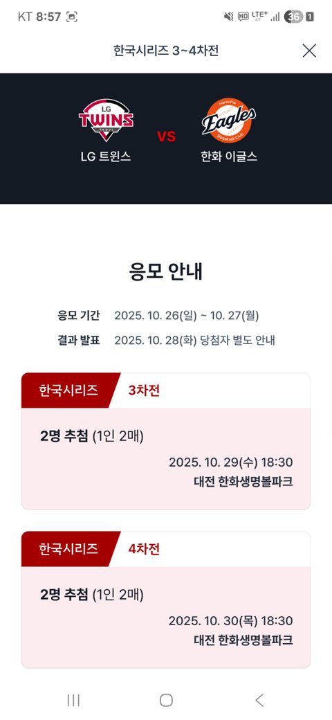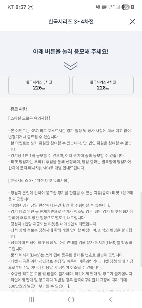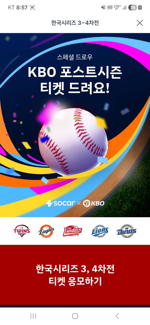 KBO 한국시리즈 3,4 차전 티켓 응모해라 무료다