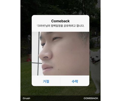 공개된 커밍 업 넥스트 이미지에는 '크러쉬님이 컴백 일정을 공유하려고 합니다'라는 문구와 함께 허공을 응시하는 크러쉬의 옆모습이 담겼다. 이와 함께 배경에는 그의 반려견인 두유가 포착돼 팬들의 반가움을 증폭시켰다.