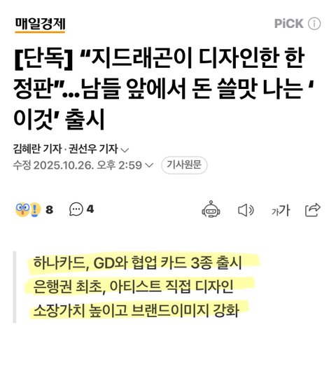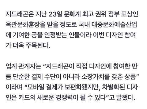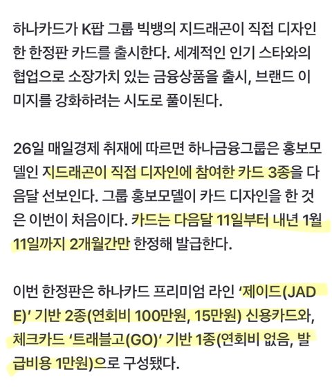 지디가 디자인한 하나 신용카드랑 체크카드 3종 나올 예정