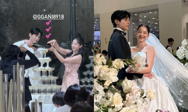 공개된 사진 속 두 사람은 마치 드라마 속 한 장면을 옮겨놓은 듯 눈부신 자태를 뽐냈다. 특히 2부 결혼식에서 김가은은 우아한 핑크 드레스를, 윤선우는 세련된 백색 정장을 착용해 시선을 단번에 사로잡았다.