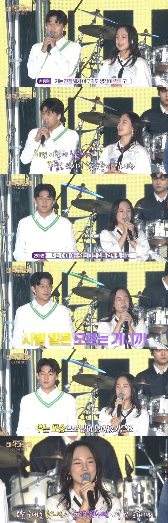 정식 참가자로 '대학가요제'에 참여할 생각이 있는지 묻자 신하연은 "저는 아마 아빠와는 다른 길을 걷게 될테고 이번일이 처음이자 마지막이지만 사람 일은 어떻게 될지 모르는 거니까 잘 부탁드린다"라고 전해 관객들의 환호를 받았다.
