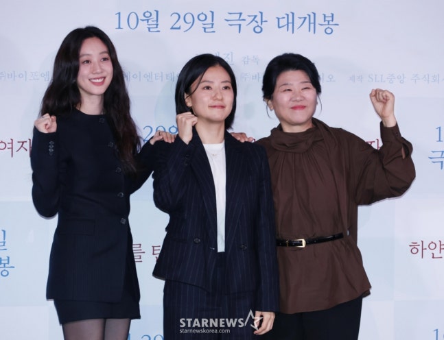 배우 정려원, 고혜진 감독, 배우 이정은이 27일 오후 서울 CGV용산아이파크몰에서 진행된 영화 '하얀 차를 탄 여자'(감독 고혜진) 언론배급시사회 및 기자간담회에 참석해 포즈를 취하고 있다. 의문의 사고를 당한 언니와 함께 병원에 나타난 위태로운 여자(정려원 분)와 이들 뒤에 숨겨진 진실을 파헤치려는 형사(이정은 분)의 이야기를 그린 미스터리 심리 스릴러 '하얀 차를 탄 여자'는 오는 29일 개봉한다. /2025.10.27 /사진=이동훈 photoguy@'하얀 차를 탄 여자'로 입봉하게 된 고혜진 감독은 "굉장히 패기 있게 초보 연출자로 시작했는데 스릴러는 굉장히 어려운 장르더라"라며 "'크라임씬', '로스쿨' 등을 하면서 잘할 수 있을 것 같다고 생각해서 단막극으로 입봉했는데 너무 어렵다는 걸 찍으면서 알았다. 긴장감을 주기 위해서 편집의 리듬과 호흡이 중요해서 몇날 며칠을 고민하고 조정했다"고 밝혔다.특히 고혜진 감독은 정려원, 이정은에게 고마운 마음을 표현하며 "코로나19가 한창일 때 14일 만에 찍은 영화인데 추운 겨울날 고생하셨다. 3년 반 만에 극장에 나오게 돼서 너무 기쁘다"라고 말했다.