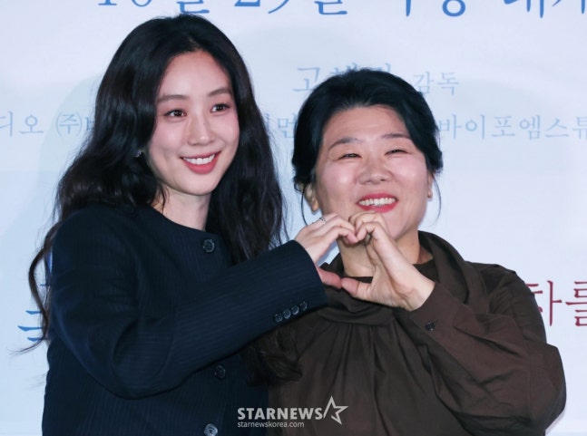 배우 정려원, 이정은이 27일 오후 서울 CGV용산아이파크몰에서 진행된 영화 '하얀 차를 탄 여자'(감독 고혜진) 언론배급시사회 및 기자간담회에 참석해 포즈를 취하고 있다. 의문의 사고를 당한 언니와 함께 병원에 나타난 위태로운 여자(정려원 분)와 이들 뒤에 숨겨진 진실을 파헤치려는 형사(이정은 분)의 이야기를 그린 미스터리 심리 스릴러 '하얀 차를 탄 여자'는 오는 29일 개봉한다. /2025.10.27 /사진=이동훈 photoguy@
