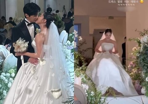 특히 버진로드를 걷던 김가은이 장애물에 걸리자 웨딩드레스를 냅다 걷어차는 모습을 담은 영상에는 “드레스 발로 차는 테토녀”라는 지인의 문구가 적혀 유쾌함을 자아냈다.
