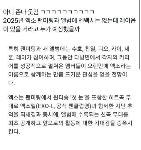 첸백시도 걍 기다린팬들 생각 ㅈㄴ안하는듯 레이님은 십년만에봄;;