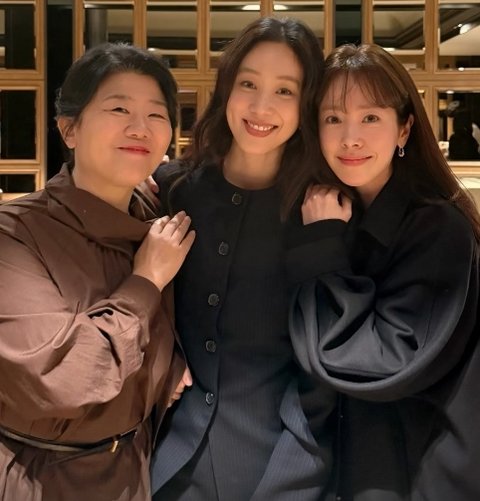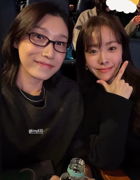 한지민은 주연인 정려원, 이정은과 인증샷을 남기고 있는가 하면, 배구선수 김연경과 영화를 같이 관람하기 위해 나란히 앉아 있다.