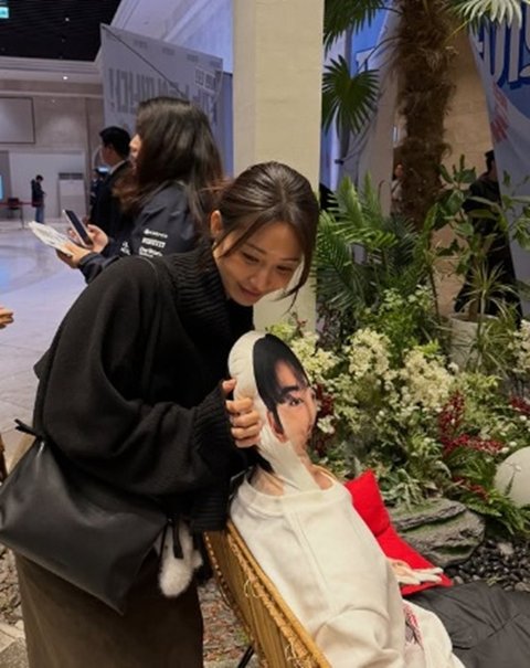 /사진=한그루 SNS이어 한그루는 군 복무로 시사회에 불참한 차은우 인형을 보고 수줍은 미소를 보여 눈길을 끌었다.한편 한그루는 최근 TV조선 드라마 '컨피던스맨 KR'에 출연했다.