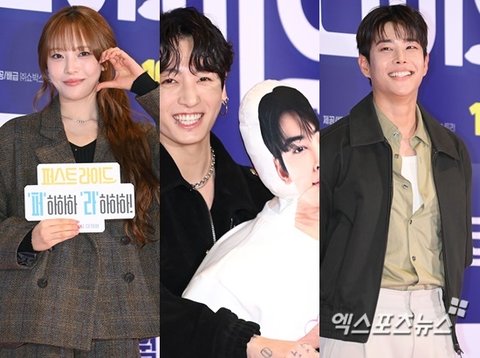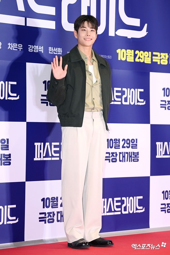 (엑스포츠뉴스 김유진 기자) 가수 BTS 정국과 아스트로 MJ, 빌리 문수아가 입대한 차은우가 남기고 간 영화 '퍼스트 라이드'(감독 남대중) 시사회에 등장해 아낌없는 응원을 전했다.