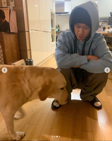 크러쉬는 여러 사진에서 짧게 머리를 자른 듯 비니를 쓴 모습을 보였고 반려견을 향한 애틋한 눈빛도 보냈다.