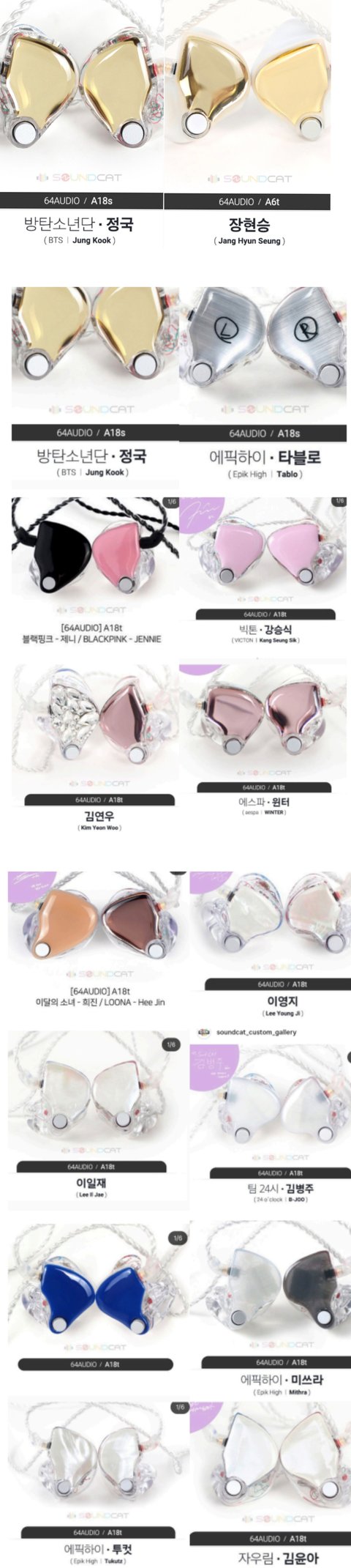 인이어업체 국내 유일한 곳이라 인스타 계정 올라온게 3700개가 넘고 겹치는 인이어 앞에거만 가져와도 이렇게 많음 ㅇㅇ 두명은 인이어 모델도 아예 다름(18T 18S) 니말대로면 정국은 모델은 타블로랑 색은 장현승이랑 커플이고 윈터는 다른 가수들이랑 모두 커플임 이것도 앞에꺼만 퍼온거라서 다 퍼오면 비슷한거만 천개도 넘을 듯?