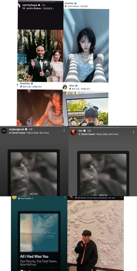 인스타 노래 몇달째 겹친적 없는데 왜 아무도 안믿는 구라침? 윈터랑 겹치는 방탄 멤버 노래 알엠 제이홉 또 다른 멤버들도 있는데 윈터를 다른 멤버로 어그로 끌 수 있어서 다 가져오진 않을게 ㅇㅇ 오히려 정국이랑 겹치는 곡이 더 적고 정국은 같은 방탄 멤버랑도 추천곡이 많이 겹침 스포티파이 랜덤으로 듣는다고 항상 얘기했고 노래 추천해준게 수십개가 넘어 윈터도 정국이 아니라 타가수 들이랑 겹치는 곡이 더 많더라 그 사람들이랑 다 사귀는거야?