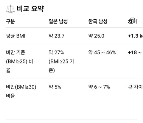 일본이랑 한국남자 평균 bmi는 큰 차이 안남.