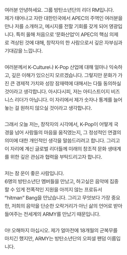 남준이 연설 번역본