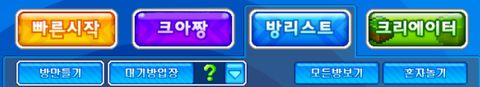 * 로비 상단 버튼 순서가 빠른시작 / 크아짱 / 방리스트 / 크리에이터로 변경됩니다.