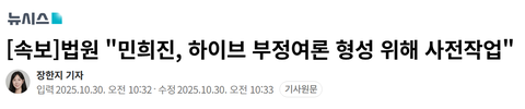 민희진이 예전부터 하이브죽이기 언플 계획 다 짜놨다며 그거 실행한거지