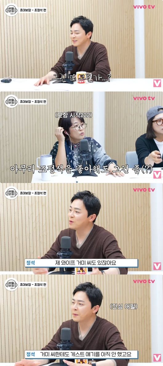 조정석은 29일 오후 유튜브채널 ‘비보티비’를 통해 공개된 “조정석 쇼에 화제의 유튜버 청계산댕이레코즈 조점석씨를 게스트로 볼 수 있나요?” 콘텐츠에 출연해 내달부터 진행될 ‘조정석쇼’에 대해 소개했다.