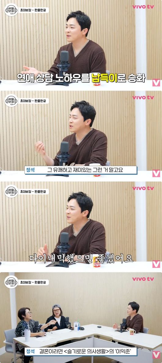 조정석은 “재미있게 사귀었으면 좋곘다. 재미있었으면 좋겠다. 유쾌하고 재미있는 그런 거 말고, 다이내믹했으면 좋겠다. 그러면서 많은 것을 배울 것 같다. 인생을”이라고 이유를 밝혔다. 그러면서 “결혼이라면 이익준”이라고 덧붙였다.