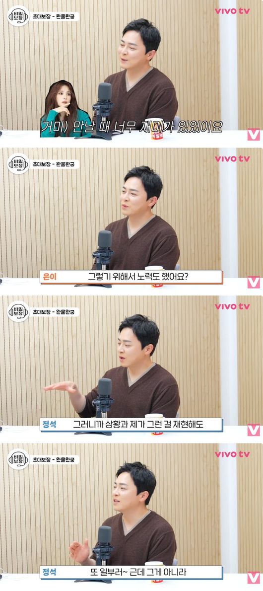 조정석은 “웃기려고 노력하면 할수록 안 웃기고 툭 툭 던지는 말에 까르르 웃었던 것 같다. 상황과 제가 그런 걸 재현해도 웃었다. 일부러 웃어주는 느낌이 있는데 진짜 웃어서 나도 기분 좋다”라고 언급했다.