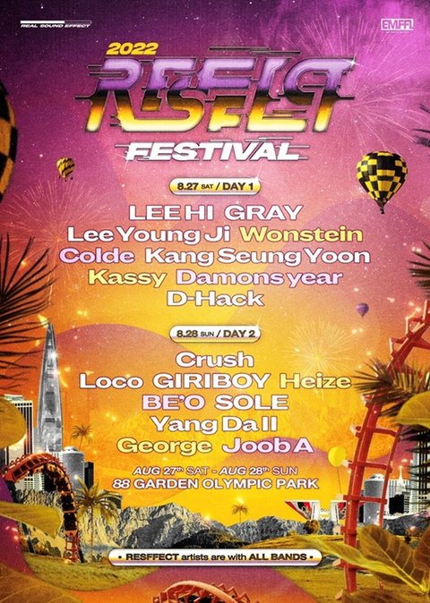 오는 8월 27일부터 28일 양일간 서울 올림픽공원 88잔디마당에서 개최될 ‘2022 RESFFECT FESTIVAL 리스펙 페스티벌’은 국내 최정상 R&B, HIP-HOP, Soul Music 아티스트 18팀이 ‘Real Sound Effect’라는 이름에 걸맞게 국내 최초로 모두 밴드와 함께 출연하는 공연이다.