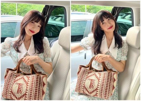 플라워 패턴의 화사한 원피스를 입고 늘씬한 몸매를 뽐냈다.