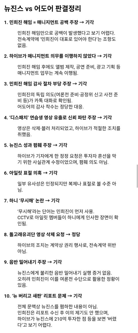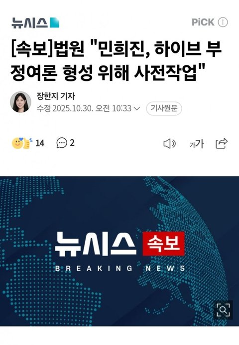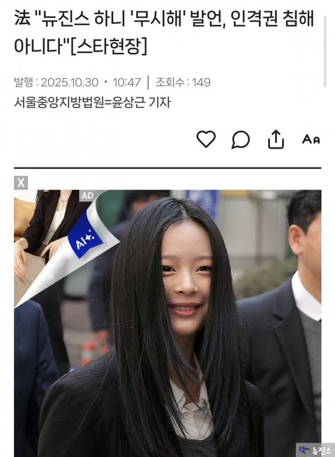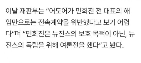[속보]뉴진스 전속계약유효소송 1심 패소,하이브의 부정여론 위한 민희진의 여론전