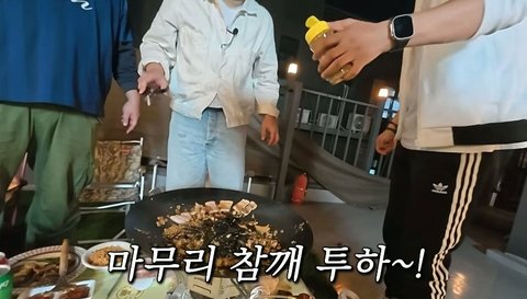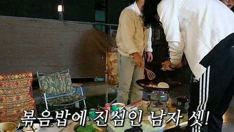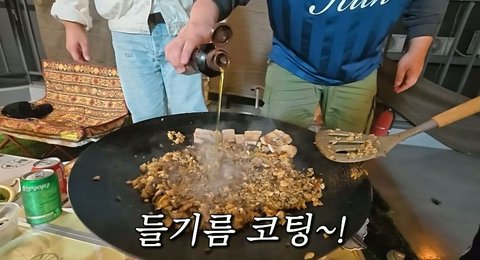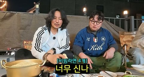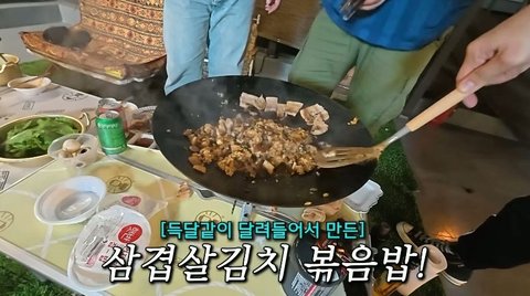 비빔라면 4개 받고 지글지글 소리 나니까 김치 볶자고 난리 ㅎㅎㅎ