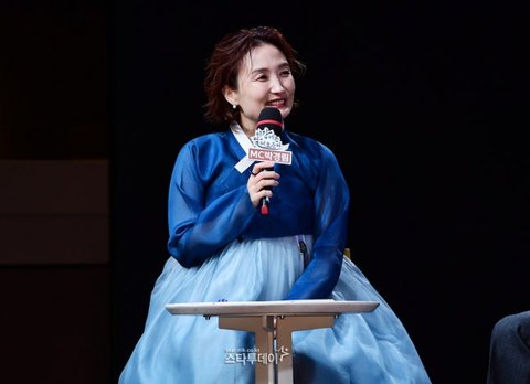 방송인 박경림이 ‘이강에는 달이 흐른다’ 제작발표회 진행을 하고 있다. <강영국 기자>