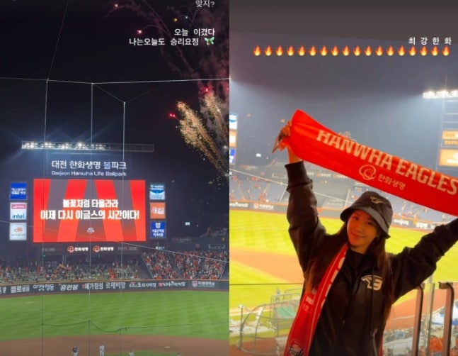 이어 3차전이 한화의 승리로 끝난 뒤 폭죽이 터지는 모습을 담으며 "맞지? 오늘 이겼다 나는 오늘도 승리요정"이라고 언급했다.