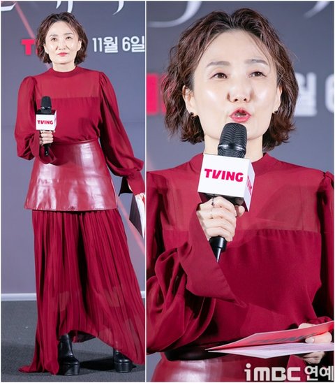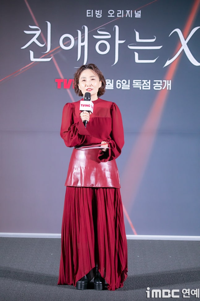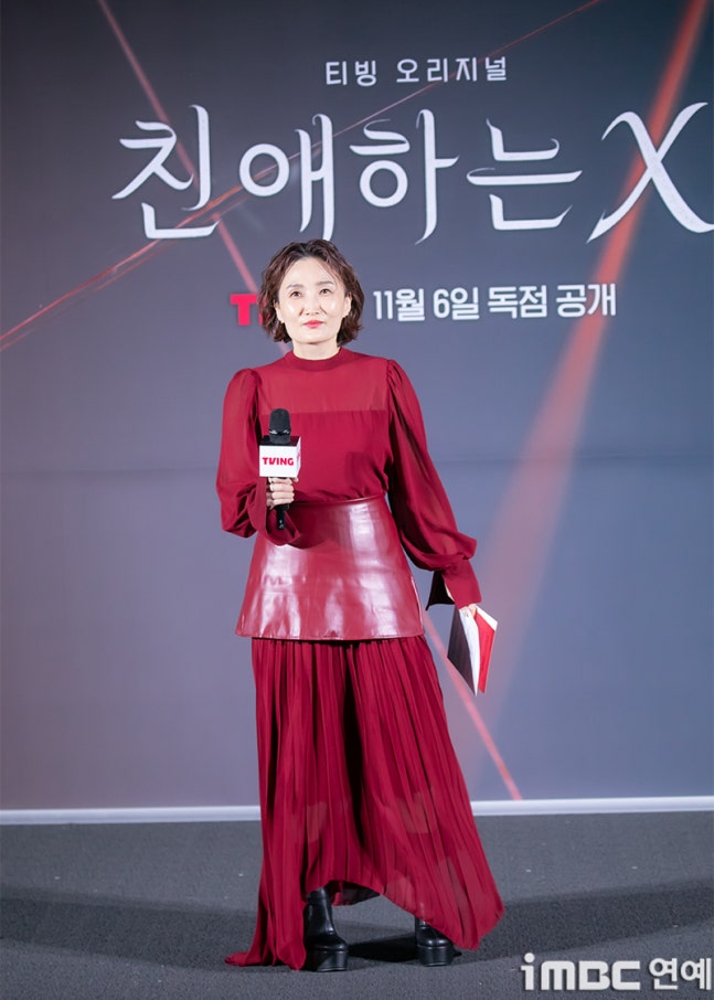 MC 박경림이 30일 오후 서울 용산CGV에서 열린 티빙 오리지널 ‘친애하는 X’ 제작발표회에 참석해 진행을 하고 있다.