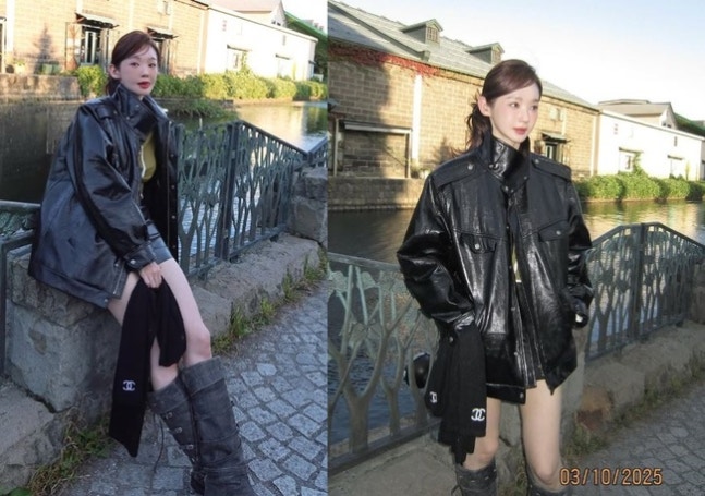 강민경은 10월 29일 소셜미디어에 "퀼팅재킷 꺼냈어요, 좋아하는 색조합"이라는 글과 함께 사진을 게재했다.