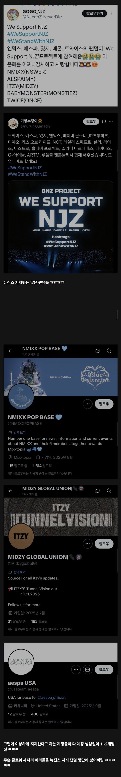 뉴진스 지지하는 아이돌 팬덤들