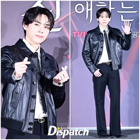 이날 기자간담회에 참석한 김도훈은 가죽 재킷과 블랙 슬렉스로 시크한 스타일을 선보였다. 다양한 하트 포즈로 러블리한 매력도 어필했다.