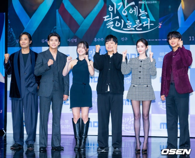 MBC는 30일 오전 서울시 마포구 상암동에 위치한 사옥에서 새 금토드라마 '이강에는 달이 흐른다'(극본 조승희, 연출 이동현, 약칭 '이강달') 제작발표회를 진행했다. 이 자리에는 작품의 주연인 강태오, 김세정, 이신영, 홍수주, 진구와 연출을 맡은 이동현 PD가 참석해 방송인 박경림의 진행 아래 프로그램에 대한 이야기를 나눴다.