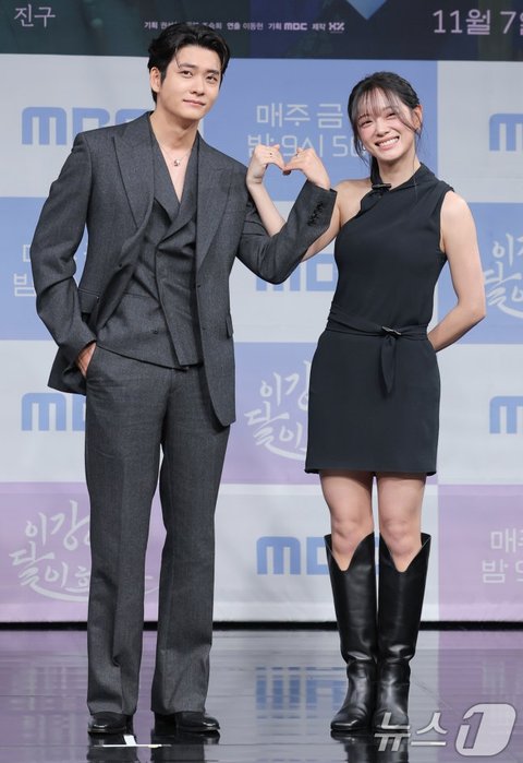 배우 강태오와 김세정(오른쪽)이 30일 서울 마포구 상암동 MBC에서 열린 새 금토드라마 '이강에는 달이 흐른다'(극본 조승희/ 연출 이동현) 제작보고회에서 포즈를 취하고 있다. '이강에는 달이 흐른다'는 웃음을 잃은 세자와 기억을 잃은 부보상의 영혼체인지 역지사지(易地四肢) 로맨스 판타지 사극 드라마다. 2025.10.30/뉴스1 ⓒ News1 권현진 기자