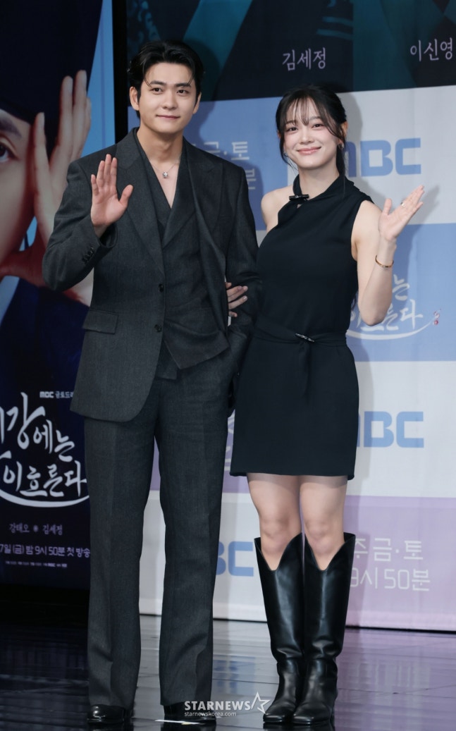 배우 강태오, 김세정이 30일 오전 서울 마포구 상암동 MBC 사옥에서 진행된 금토드라마 '이강에는 달이 흐른다' 제작발표회에 참석해 포즈를 취하고 있다. 웃음을 잃은 세자와 기억을 잃은 부보상의 영혼 체인지 역지사지(易地四肢) 로맨스 판타지 사극 '이강에는 달이 흐른다'는 11월 7일 첫 방송된다. /2025.10.30 /사진=이동훈 photoguy@이동현 PD는 '이강달' 배우들의 캐스팅 이유에 대해 "대본의 캐릭터에 맞는 배우들을 캐스팅했다. (강태오와 김세정이) 이 작품의 시크릿을 잘 표현해 줄 것 같았고 얼굴 합도 좋았다. 연기도 더 말할 나위가 없었다"라고 밝혔다. 이어 "이신영 씨는 가장 마지막에 캐스팅됐는데, 아픔을 잘 표현해 줄 배우라 생각했다. 홍수주 배우는 '조선에 가장 아름다운 우희'를 찾다가 만났다. 보이스도 매력적이었다. 진구 선배님도 일반적인 악역을 넘어 시크릿을 잘 표현해 줄 것 같았다"고 전했다.