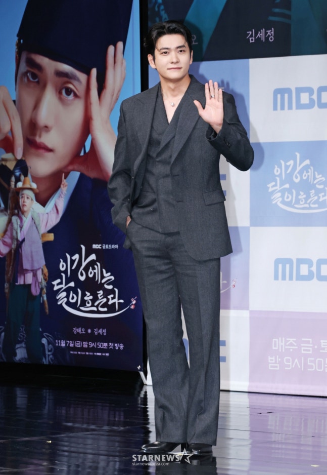 배우 강태오가 30일 오전 서울 마포구 상암동 MBC 사옥에서 진행된 금토드라마 '이강에는 달이 흐른다' 제작발표회에 참석해 포즈를 취하고 있다. 웃음을 잃은 세자와 기억을 잃은 부보상의 영혼 체인지 역지사지(易地四肢) 로맨스 판타지 사극 '이강에는 달이 흐른다'는 11월 7일 첫 방송된다. /2025.10.30 /사진=이동훈 photoguy@