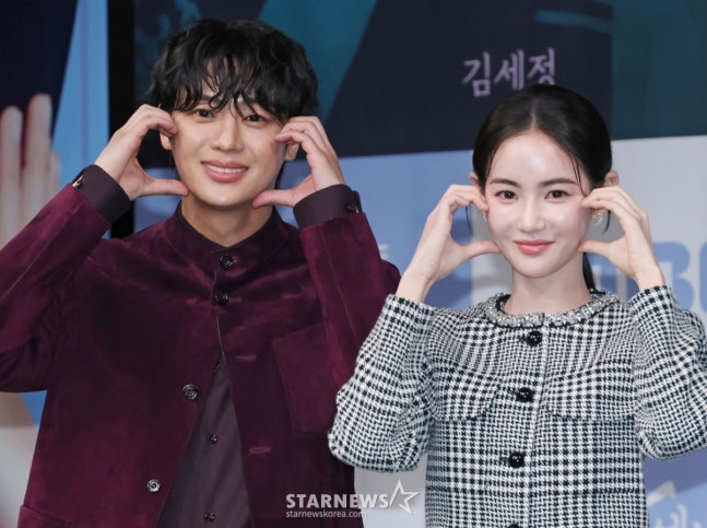 배우 강태오, 김세정이 30일 오전 서울 마포구 상암동 MBC 사옥에서 진행된 금토드라마 '이강에는 달이 흐른다' 제작발표회에 참석해 포즈를 취하고 있다. 웃음을 잃은 세자와 기억을 잃은 부보상의 영혼 체인지 역지사지(易地四肢) 로맨스 판타지 사극 '이강에는 달이 흐른다'는 11월 7일 첫 방송된다. /2025.10.30 /사진=이동훈 photoguy@