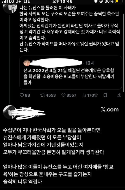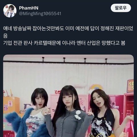 뉴진스 망친 1등공신이 저런 팬들임 뉴진스 멤버들 저런 응원보고 지들이 진짜 잘하고있고 정의라고 믿었을거아냐