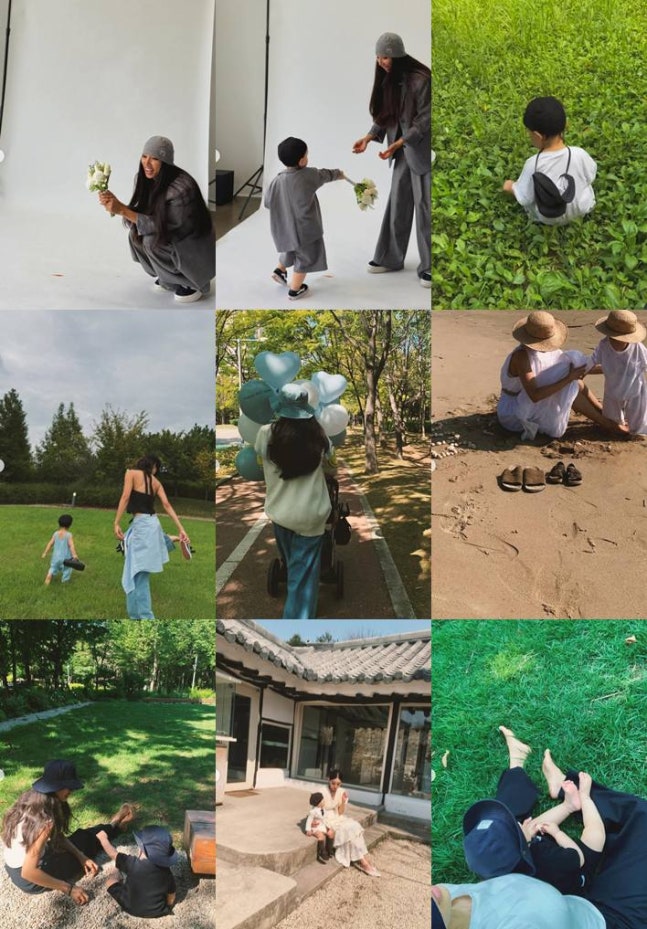 공개된 사진에는 아들과 함께한 일상이 담겨 있다. 두 사람은 커플룩처럼 의상을 맞춰 입고 웃음을 지었으며, 바닷가에서 여유로운 시간을 보내는 모습이 눈길을 끈다. 총 10장에 달하는 사진 속 아들은 어느새 훌쩍 자라 걸음을 떼며 ‘폭풍성장’을 보여줬다.