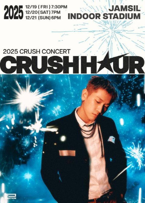 이날 함께 공개된 포스터는 푸른빛 불꽃이 터지는 그래픽과 수트를 입은 크러쉬의 세련된 비주얼이 어우러져 축제 같은 분위기를 자아낸다. 강렬한 서체로 표현된 공연 타이틀이 더해져 한층 감각적인 무드를 완성했다.