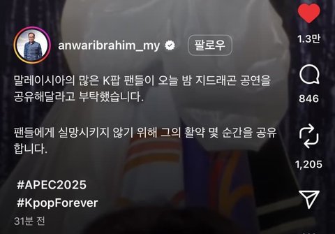 지디가 APEC에서 홍보대사 자격으로 단독 공연함