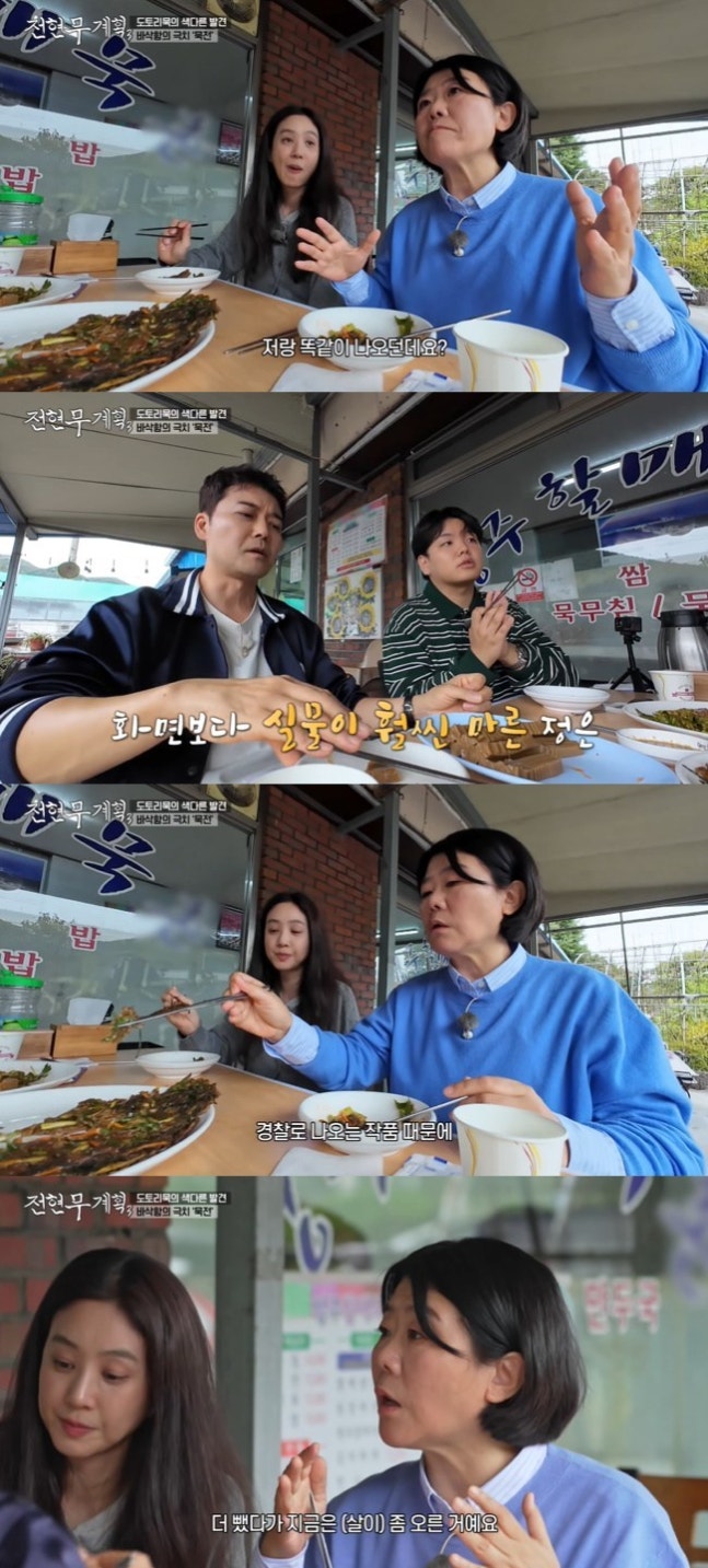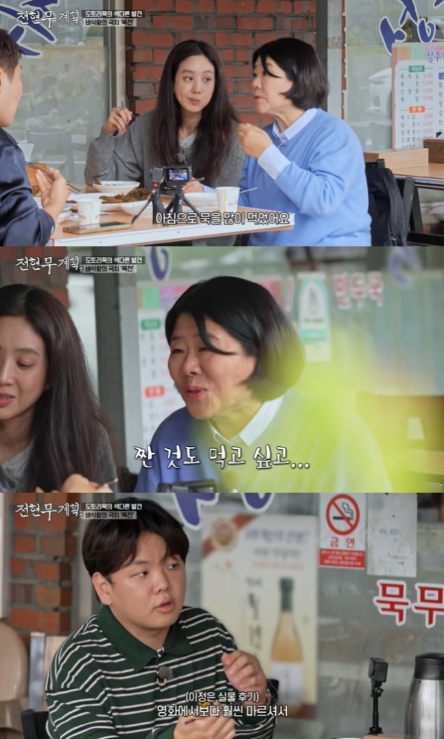사진=MBN, 채널S ‘전현무계획3’ 캡처네 사람은 진한 묵과 소스 맛에 감탄했다. 이정은은 “제가 요즘에 체중 줄이면서 어머니가 묵을 얻어오셔서 아침으로 묵을 많이 먹었다. 진짜 좋다”라고 말했다.
