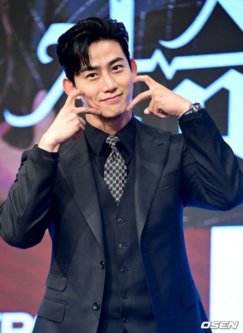 [OSEN=최규한 기자] 26일 오후 서울 신도림동 디큐브시티 더 세인트에서 KBS 2TV 새 월화드라마 ‘가슴이 뛴다’ 제작발표회가 열렸다.드라마 ‘가슴이 뛴다’는 100년 중 하루 차이로 인간이 되지 못한 반인뱀파이어 선우혈(옥택연)과 인간미라고는 찾아볼 수 없는 여자 주인해(원지안)가 어쩌다 동거를 시작, 진정한 온기를 찾아가는 아찔한 목숨 담보 공생 로맨스다.가수 겸 배우 옥택연이 포토타임을 하고 있다. 2023.06.26 / dreamer@osen.co.kr